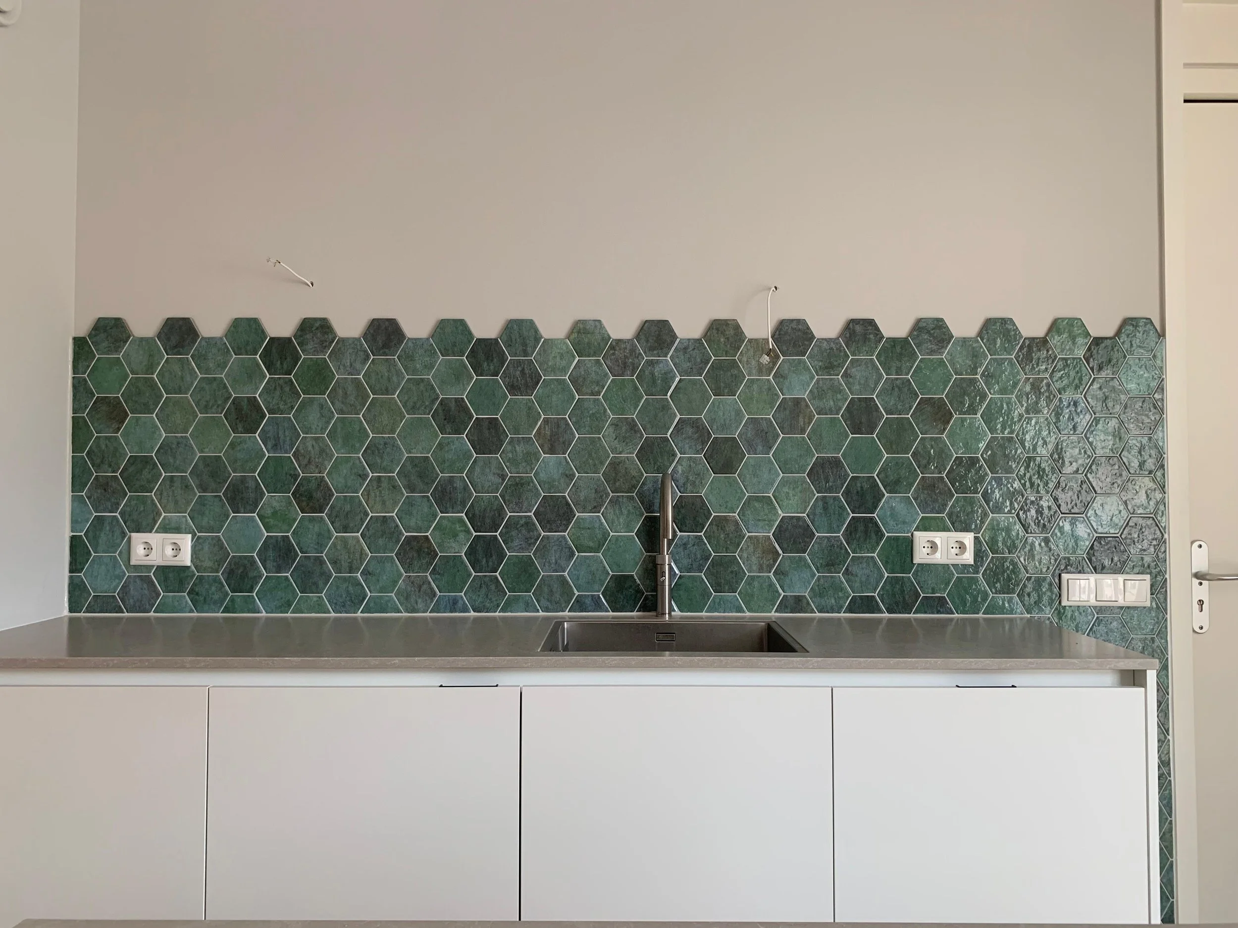 In een keuken betegelde ik de wand met hexagonale “honingraat” tegels